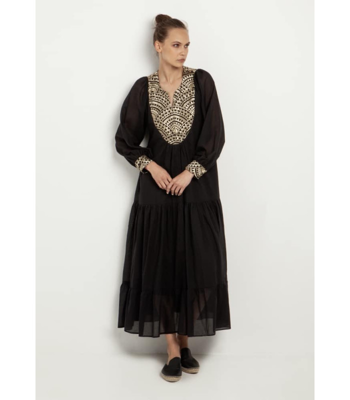 Cotton dress with gold embroidery