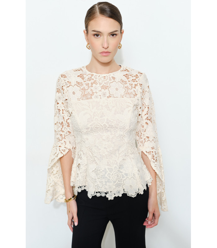 Floral Lace Slitted Long Sleeves Blouse Woven Top