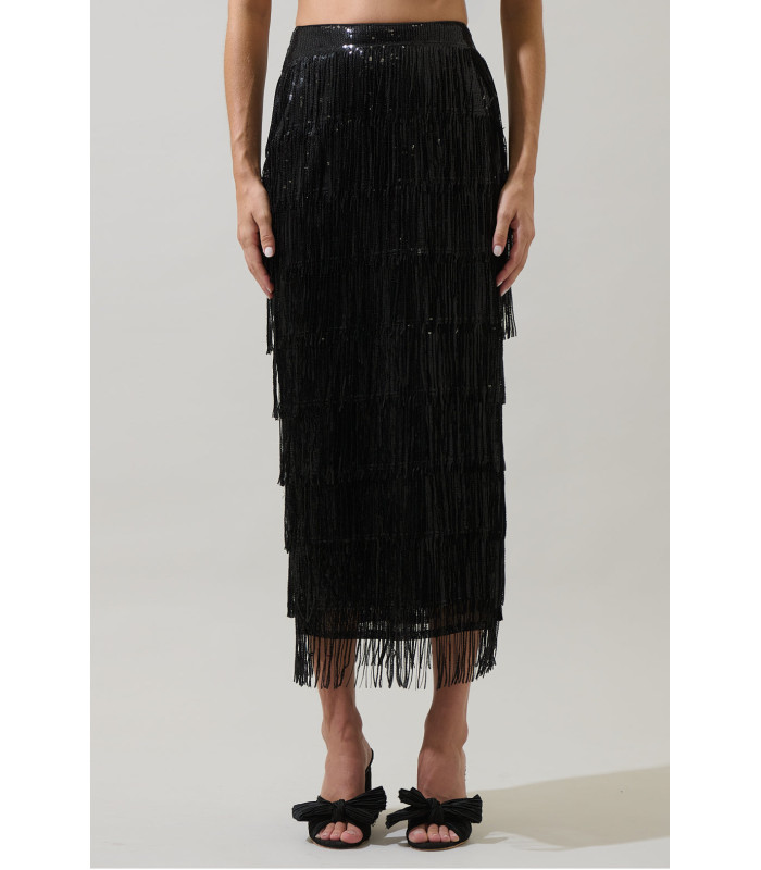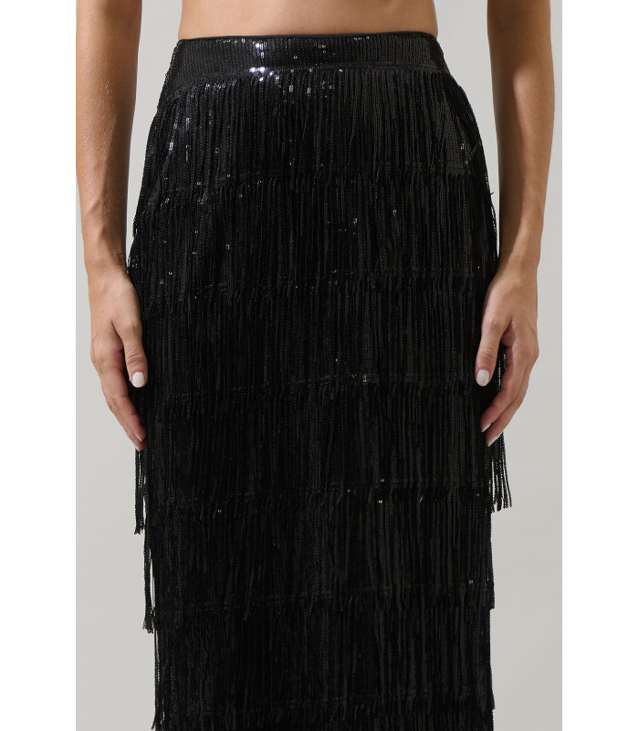 Long skirt with fringe and sequins