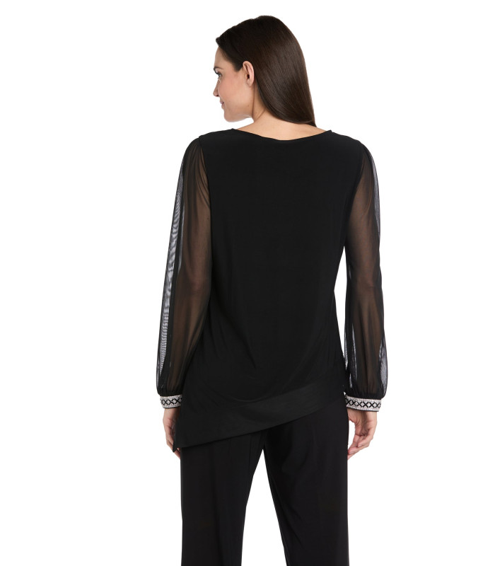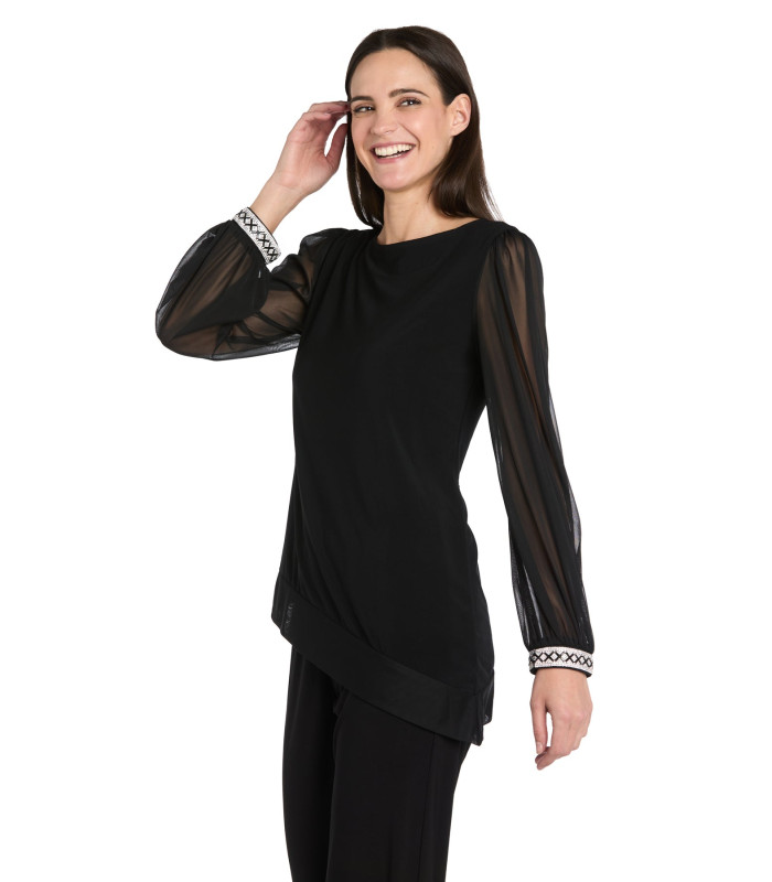 Asymmetrical blouse with long sleeves and shiny cuffs