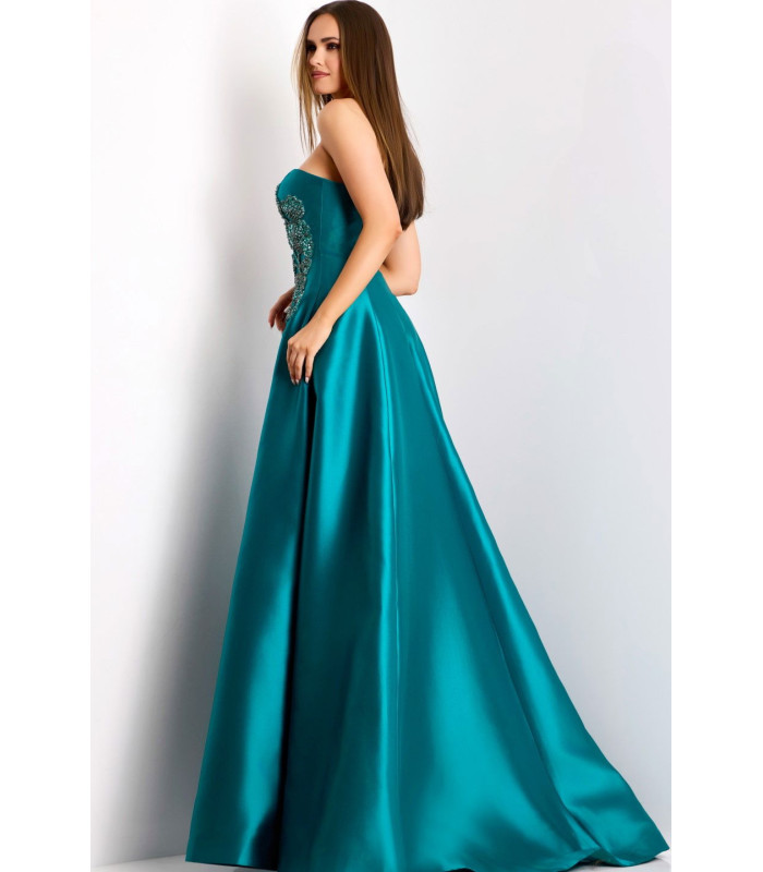 Strapless A-Line Gown with Intricate Floral Appliqué