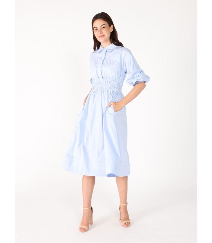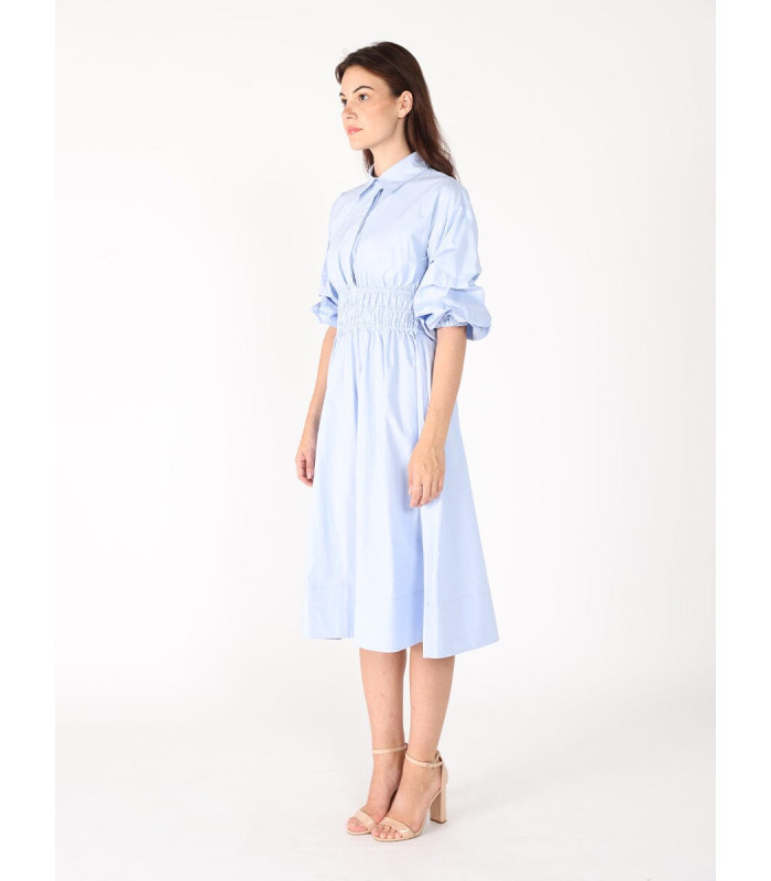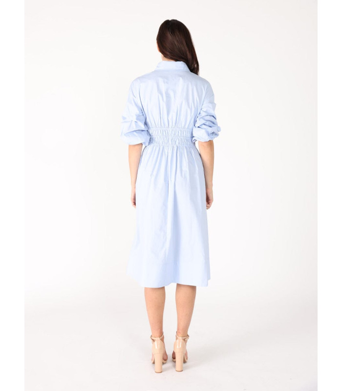 Ruched Puff Sleeve & Waist A Line Midi Dress