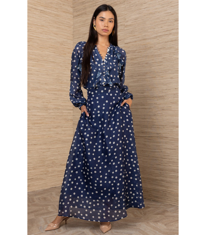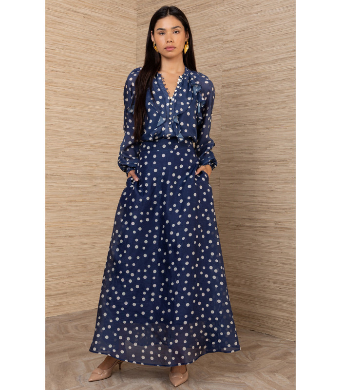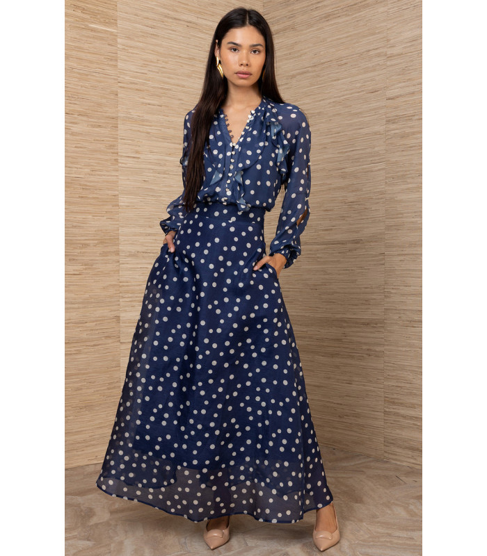 Linen and silk organza suit with polka dots