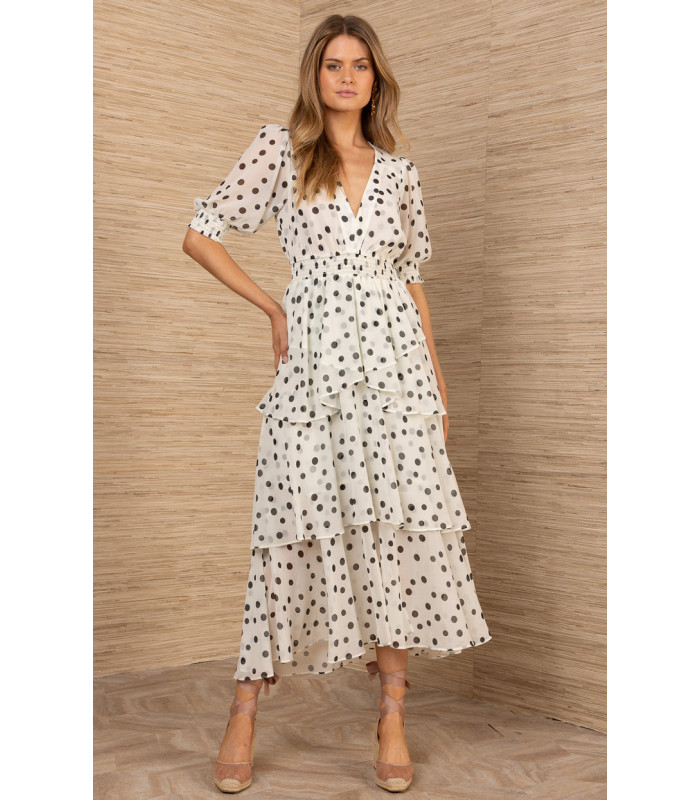 Polka dot dress with tiered ruffles