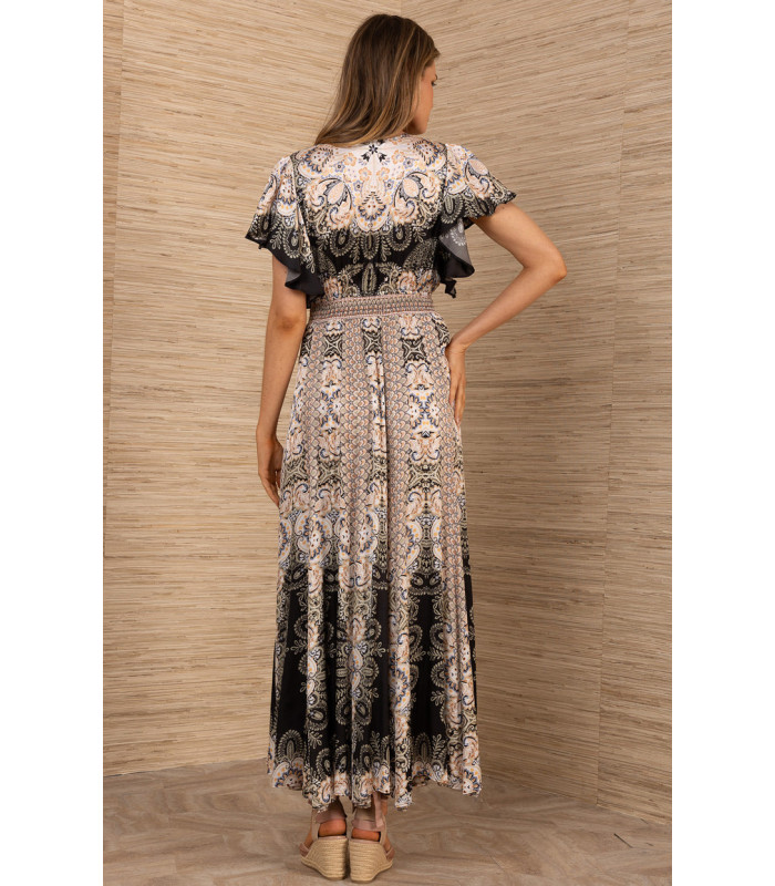 Dress with gathered waist and flared sleeves