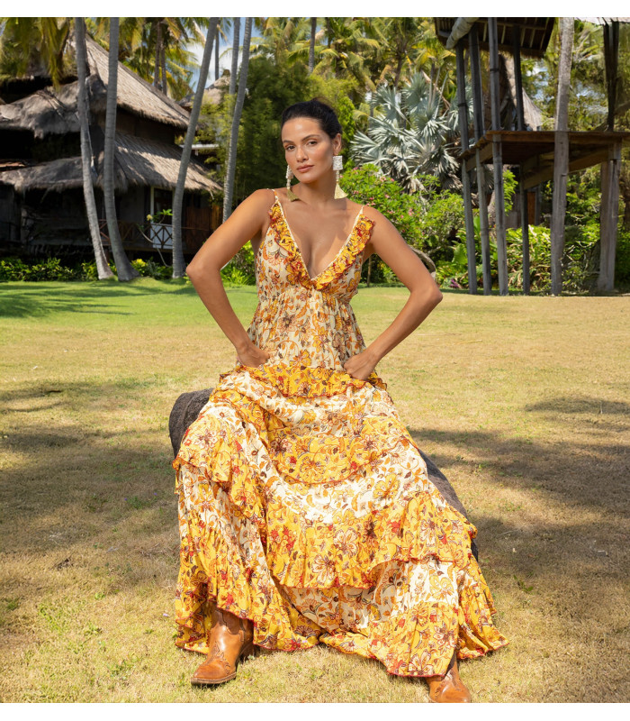 Floral print sundress in warm tones