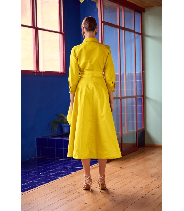 Shirt-style midi dress made of taffeta