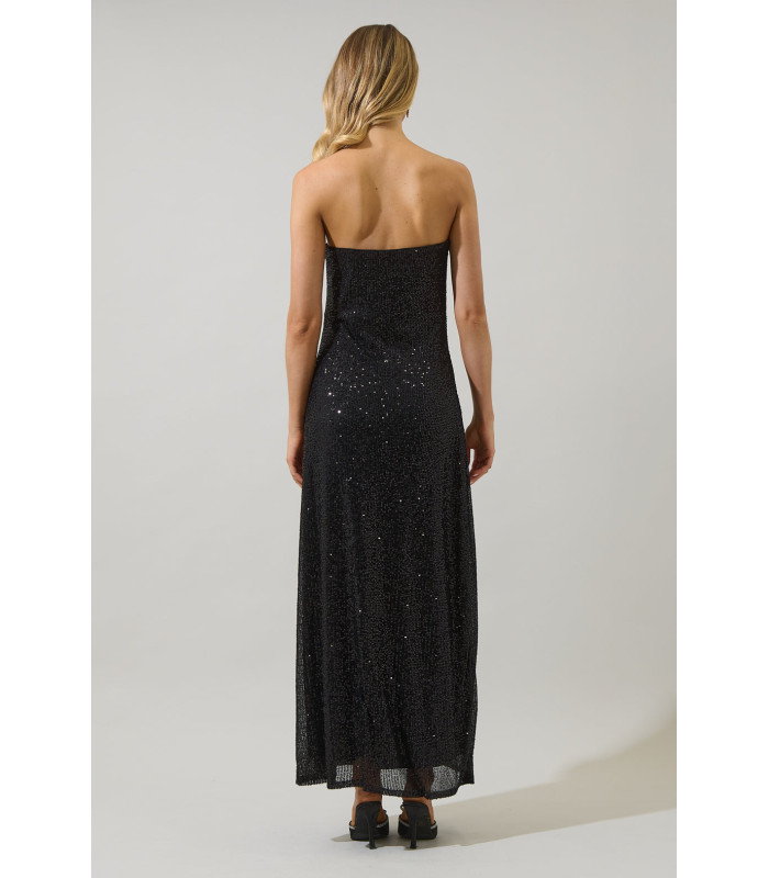 Vestido largo sin tirantes con lentejuelas