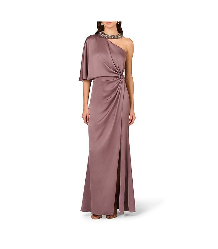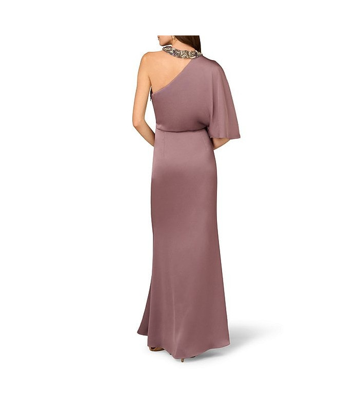 Vestido de satén asimétrico de un solo hombro con cuello de cuentas