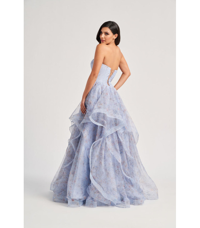 Vestido sin tirantes con falda llena de volantes