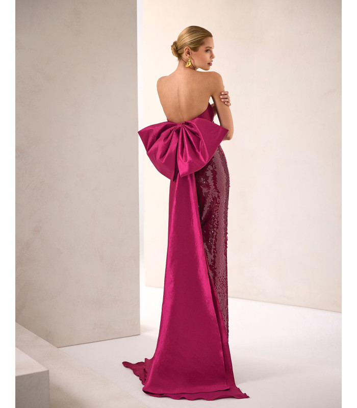 Vestido sin tirantes con falda de lentejuelas y lazo en la espalda
