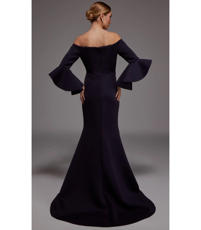 Vestido sirena con hombros descubiertos y mangas acampanadas