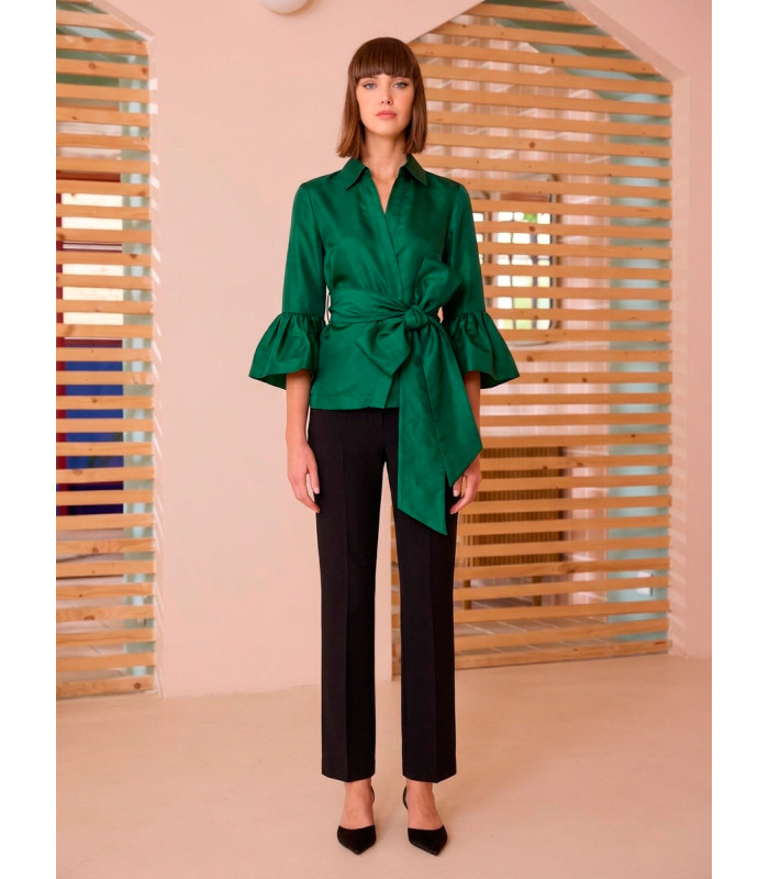 Blusa con mangas con volantes y lazo en la cintura