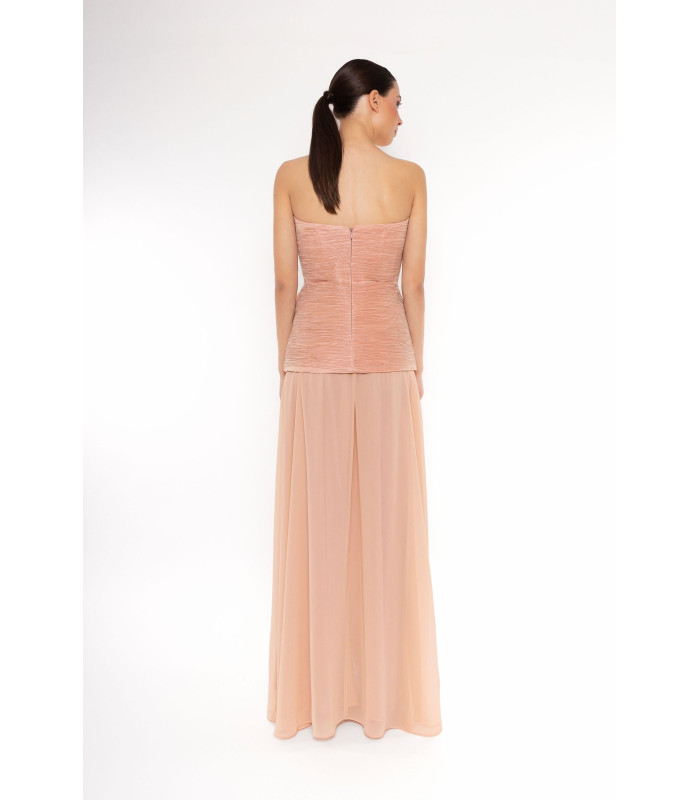 Conjunto de blusa strapless con aplicación de flor en 3D y falda lisa.